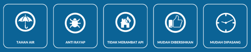 Tidak akan melengkung, menggelembung, atau lapuk meski terkena air—ideal untuk dapur, kamar mandi, maupun area lembap.