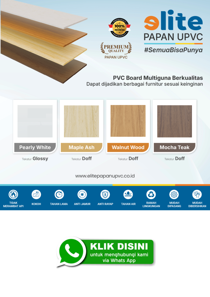 Saran saya, coba konsultasikan kebutuhan furniture kamu dengan material yang punya track record jelas. Elite UPVC hadir dengan berbagai pilihan warna dan tekstur yang bisa menyerupai serat kayu asli, tapi dengan keunggulan teknis yang nggak dipunyai kayu manapun.